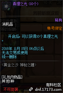 活动期间推荐地下城会掉落黄金沙,收集即可进行祈愿,祈愿可获得真理之光。
