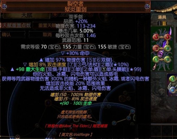 1.武器裂空大剑,这个BD的起始点。建议满足8%攻击速度。