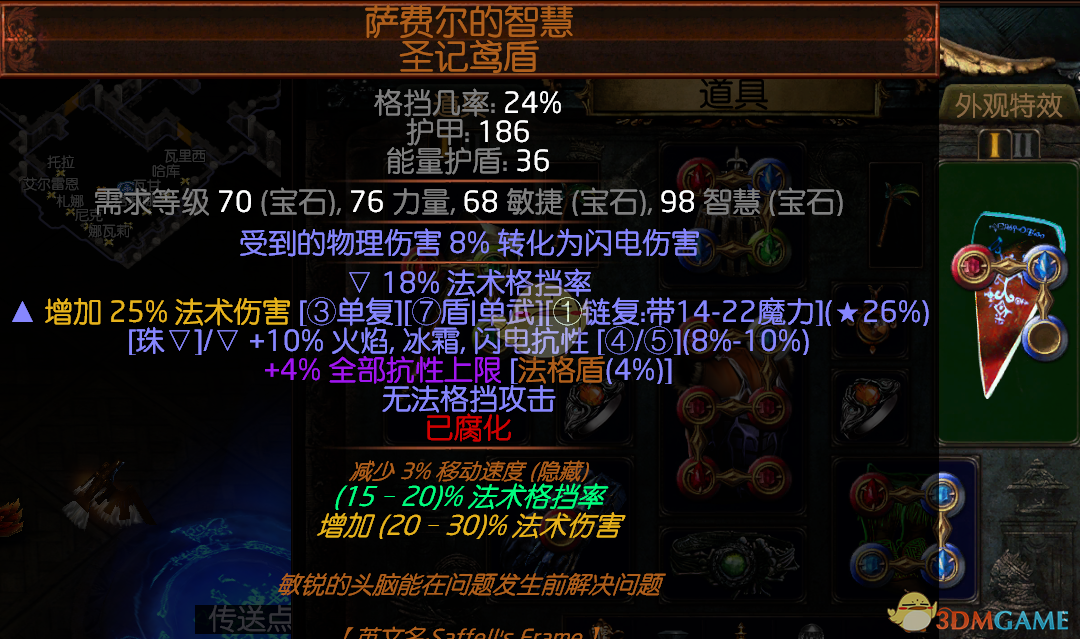 市集搜10%物转的 不要选带智力的底子 词缀不要带智力/最大护盾 优先选择加力量和电抗的