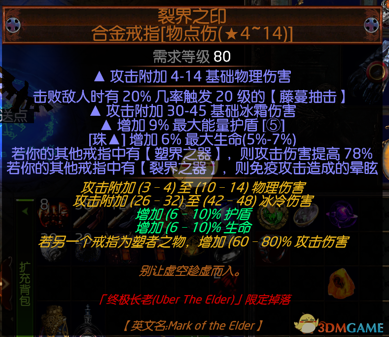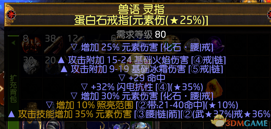 戒指 秒回戒X2用来挖矿 刷图用传奇合金配塑界蛋白 有条件用化石做出双元素伤 高元素点伤