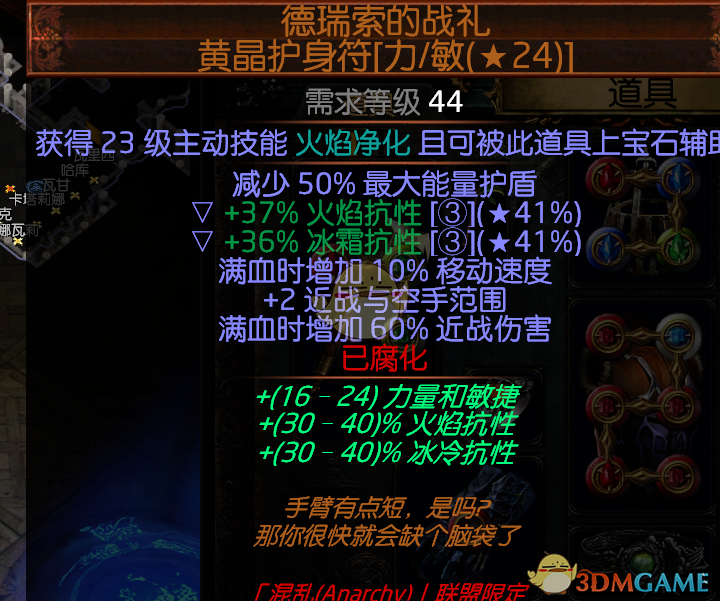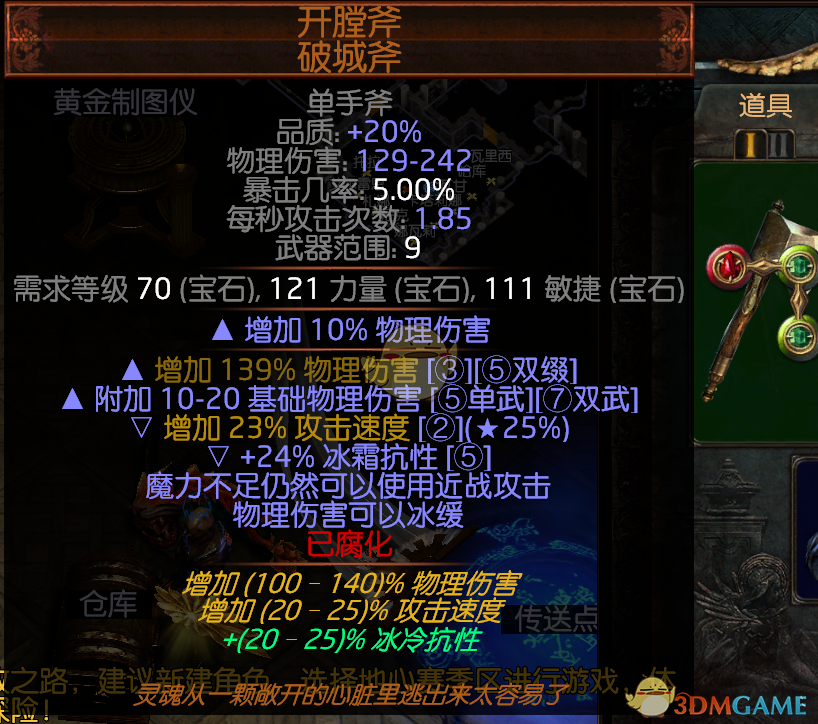 武器 免蓝斧 攻击越高越好 输出的主要来源 经济条件允许就腐一下 腐化的词缀大部分都有用
