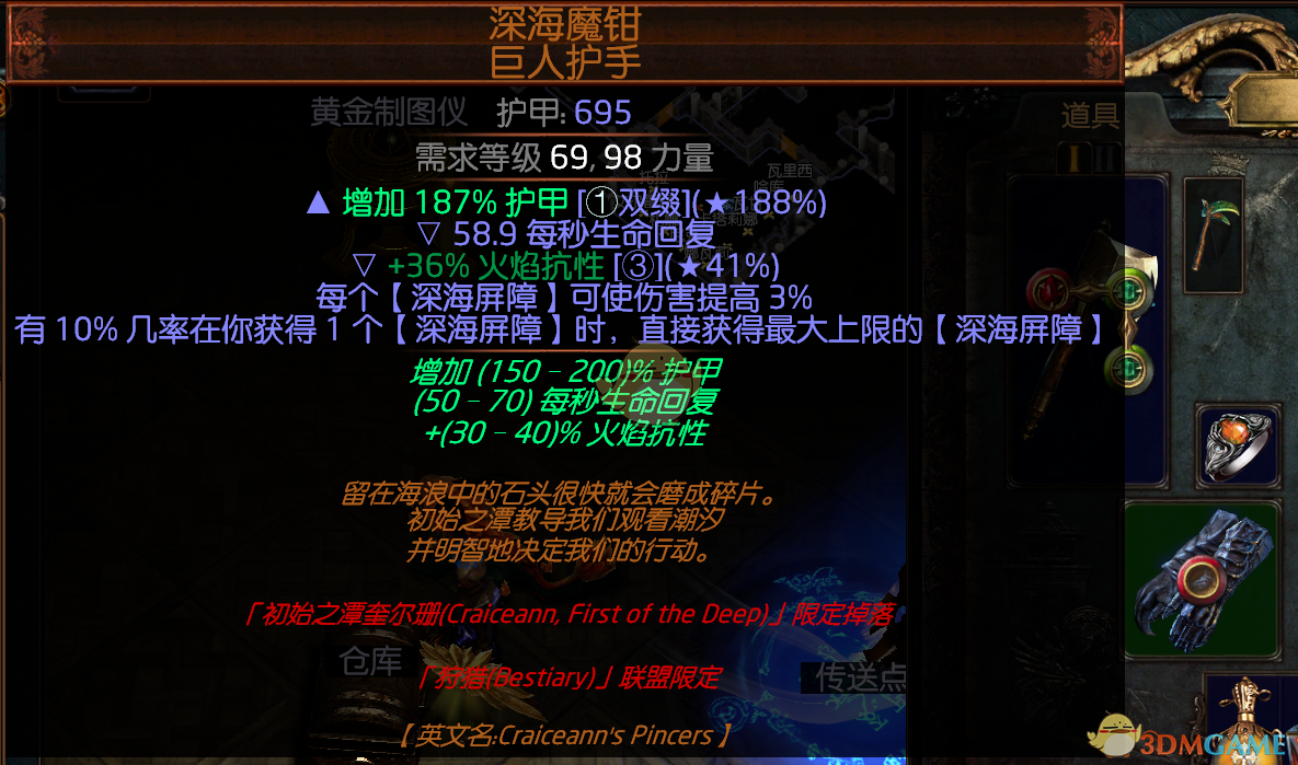 手套 深海手 选秒回高的 刷图2孔深渊手选高攻速