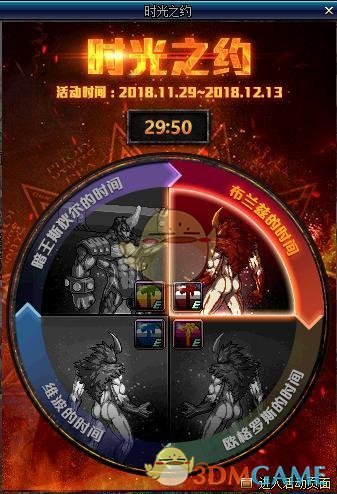 活动日期是20018年11月29日更新后到12月13日更新前,活动玩法大家以前应该有参加过,我们可以看到在活动界面有时间倒计时,每站街30分钟就能获得一个奖励,30分钟、60分钟、90分钟,我记得之前的时光之约是跟NPC的活动。那时候的奖励试契约、深渊票和锻造炉,那么这一次的奖励有哪一些呢?看起来都是深渊里的精英怪,奖励肯定是以深渊为主。
