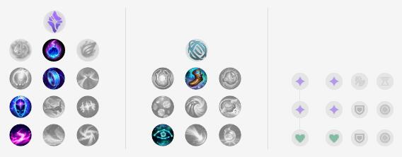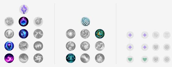 主系选择巫术系艾黎,配合自己的E技能更好消耗,还能配合W技能帮助队友提供海量护盾,法力流系带保证续航,超然提供冷却,节奏提高消耗伤害。副系选择精密系的气定神闲和致命一击,参与击杀回蓝并且减少大招冷却,让拉克丝一波团战释放多次大招,属性符文选择法强+法强+生命值。