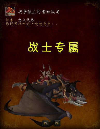 也是颜色随着专精不同而改变,样子还是挺酷炫的,符合战士的风格,不过龙类坐骑一直骑的玩家都比较少吧。