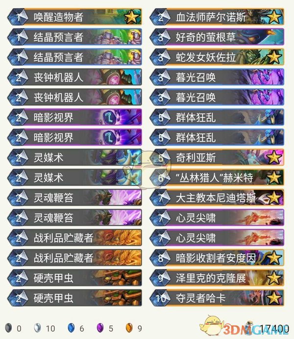 狗贼叔叔新版本继续构筑他的叠甲战(挨打就完事儿了)。这套狗贼的龙防战采用了无限体系,并且这套卡组有着强力的叠甲苟活能力:枯须铸甲师、盾牌格挡、烬鳞幼龙。巨龙怒吼和火树巫医可以给战士补充手牌,当最后乱斗斩杀卡手时,我们还可以使用窃魂者阿扎莉娜复制对手的手牌。