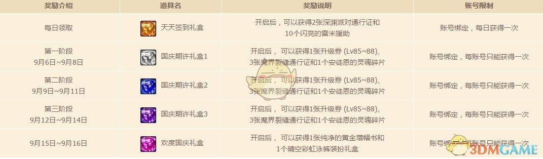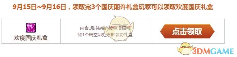 领取够3次国庆期许礼盒还可以在9月15日~9月16日登录页面领取欢度国庆礼盒