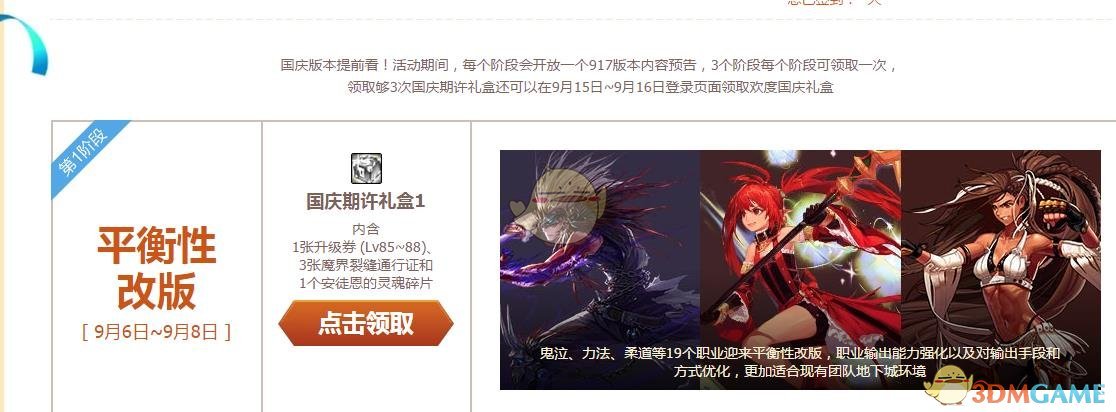 国庆版本提前看!活动期间,每个阶段会开放一个917版本内容预告,3个阶段每个阶段可领取一次,