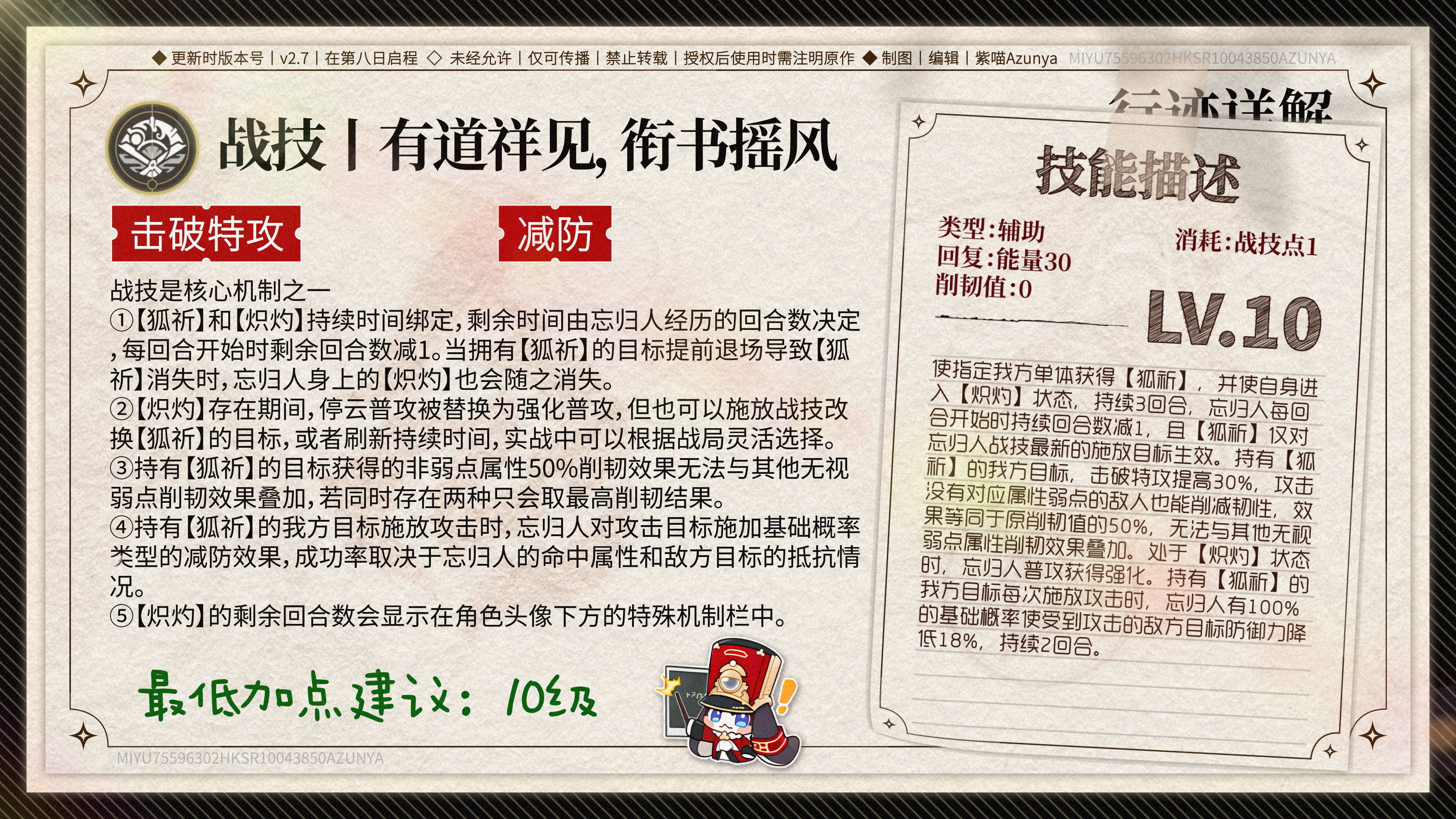 ①实战中若战技点充足,不用非常严格按照战普普的循环,可以灵活地切换战技目标,利用无视弱点削韧的效果让全队更快地击破敌人。