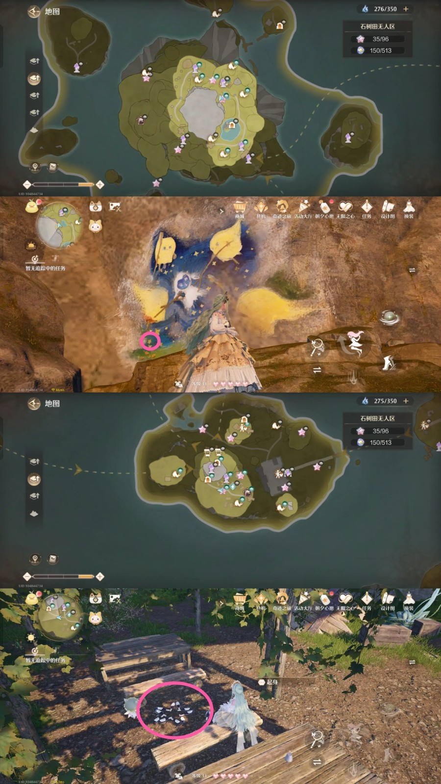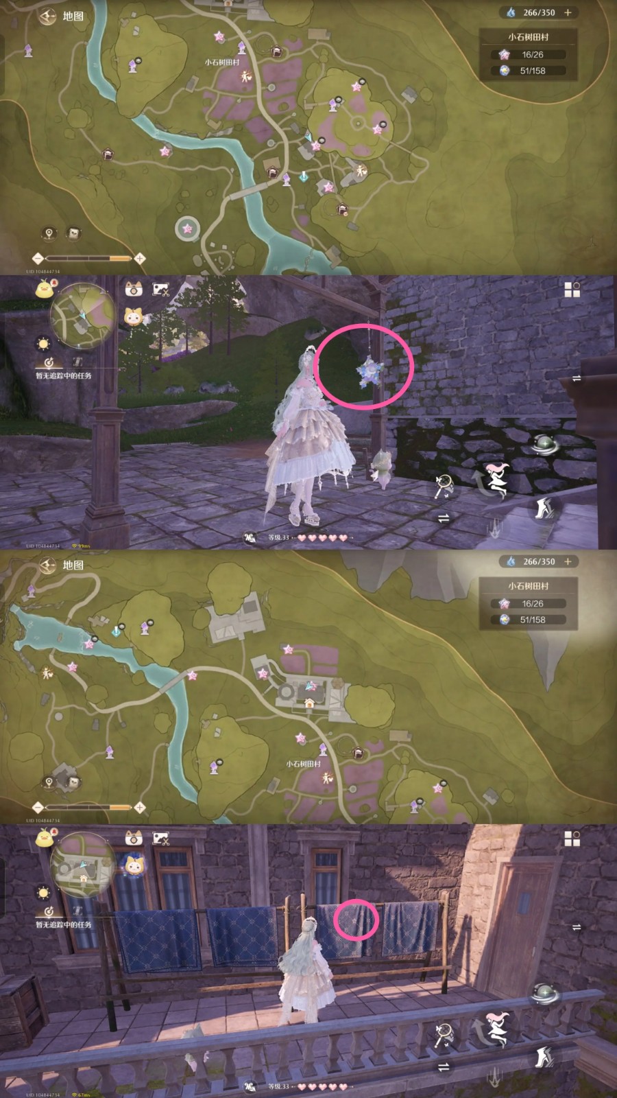 蓝色小箭头就是奇想星点位,粉色圆圈圈出来的就是要找的星星位置,靠近点调查就行。