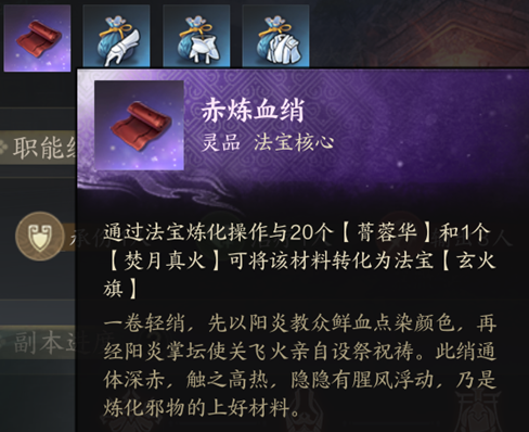 合成材料:赤炼血绡、20蓇蓉华、焚月真火