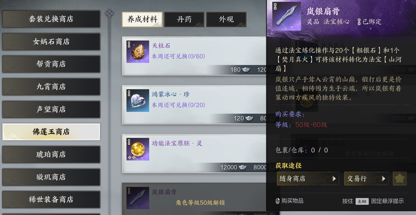 合成材料:岚银扇骨(核心)、20粗银石、焚月真火