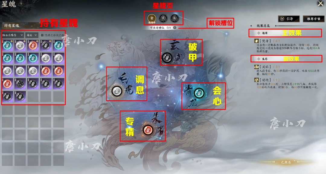 星魄主效果:核心效果有如荼、披靡、砥锋、焚身、积玄、殷雷