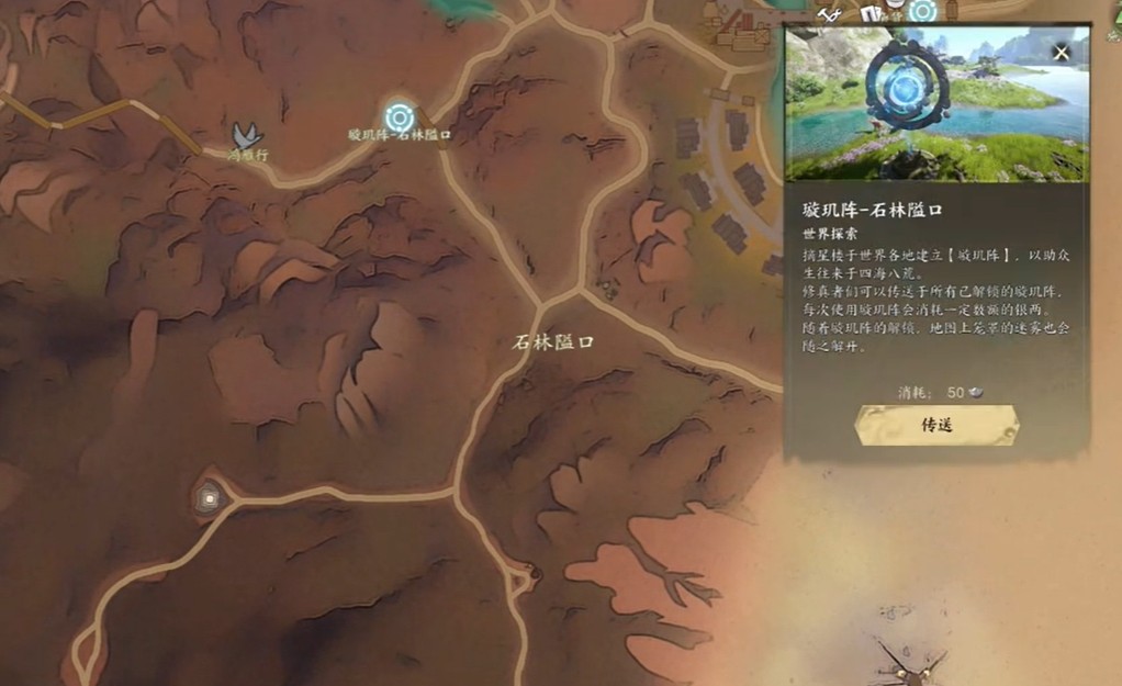 首先传送到璇玑阵-石林隘口,然后往下面走,看见跪着的两个像,右边就可以找到了。