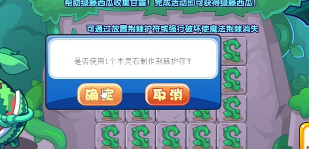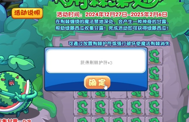 洛克王国荆棘深处是全新推出的活动之一,还有很多的小伙伴不清楚这个活动要怎么去完成,今天给大家带来了相关的攻略,那么下面就是具体的内容. 洛克王国荆棘深处攻略 首先点击获得道具,需要用到木灵石,一个木灵石可以制作三个荆棘护符。 木灵石获得:点击查看 然后去清除藤蔓,可以选择战斗清除,战斗非常的简单,也可以使用道具来清楚,和泡泡堂的玩法类似。 清除之后有甘露就点击,需要9个,一天三个。 本文内容来源于互联网,如有侵权请联系删除。