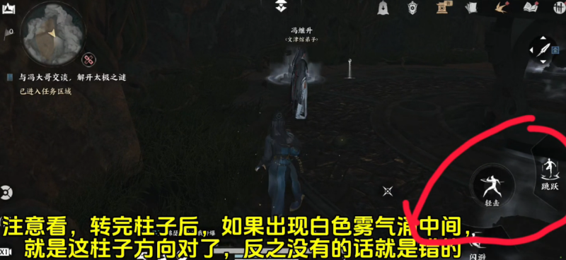 注意看,转完柱子后,如果出现白色雾气涌中间就是这柱子方向对了,反之没有的话就是错的。