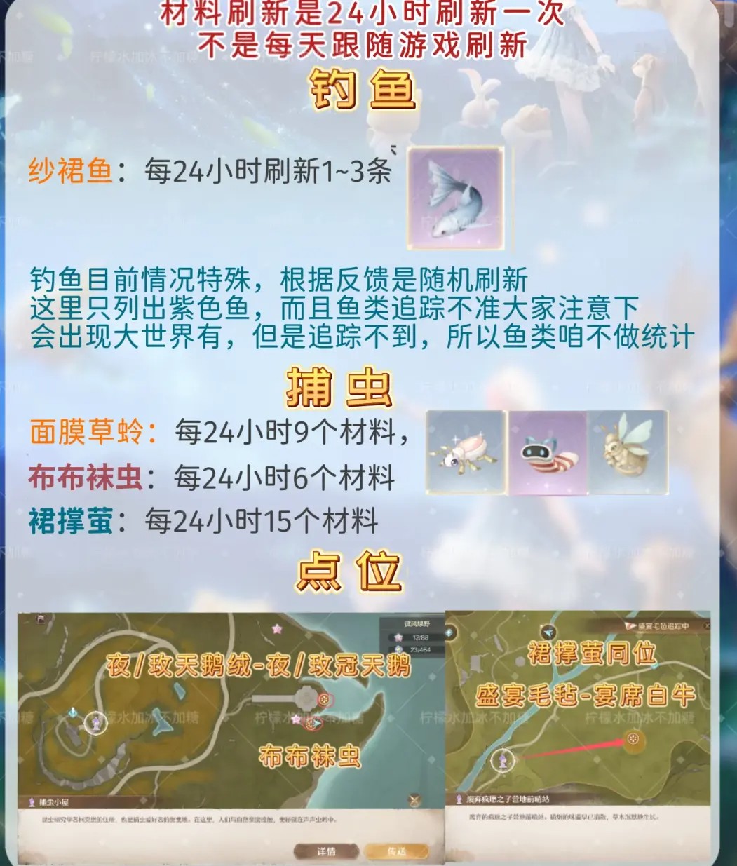 目前鱼类追踪不准大家注意下,会出现大世界有但是追踪不到,且没有精准追踪的情况,所以表内鱼类数量进行删除,只保留紫色鱼。