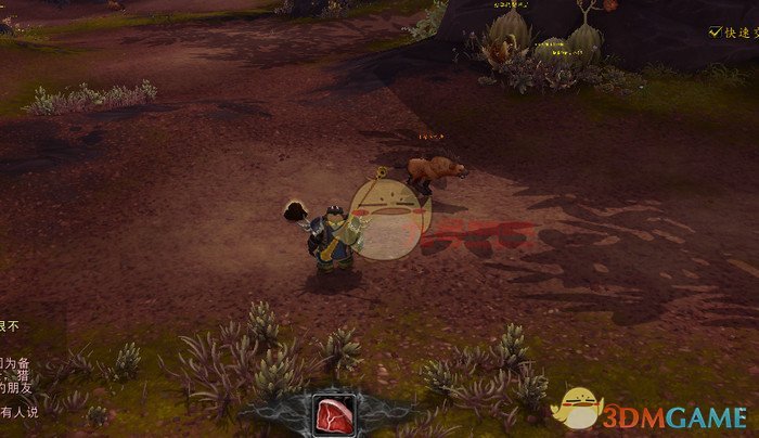 到了区域后我们屏幕中间会出现一个任务道具,而周围可以看到有很多土狼到处都是,这里并不是要消灭它们,而是选中它们点击中间的任务物品给他们喂食