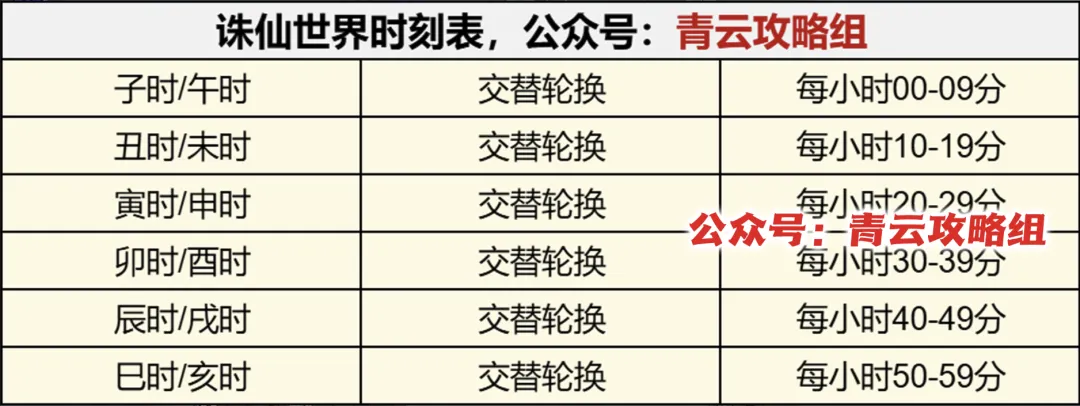 (1)河阳城-帝俊竹林-夜晚(亥时-子时-丑时-寅时)亥/巳 轮换 每小时50-59分子/午 轮换 每小时00-09分丑/未 轮换 每小时10-19分寅/申 轮换 每小时20-29分