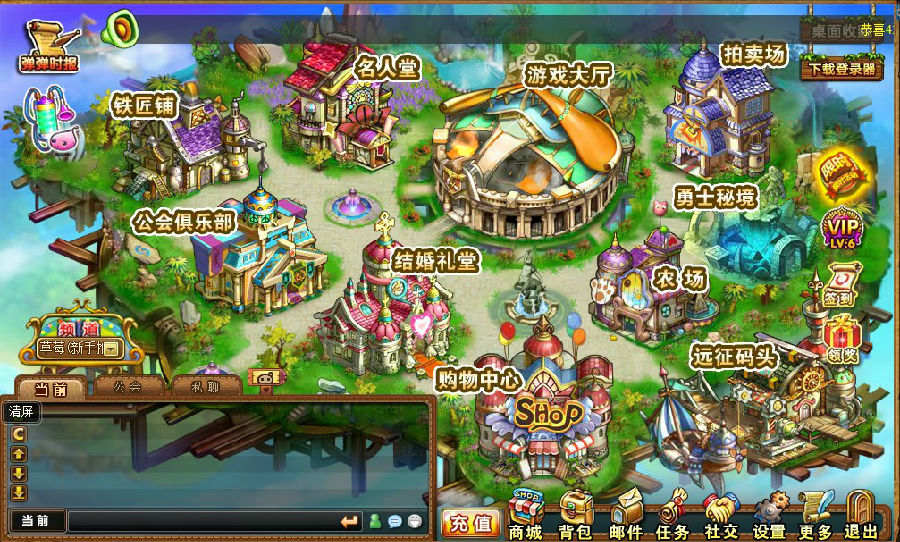 进入到游戏后,首先会进入到游戏主界面。主界面中的各种建筑具有不同的功能: