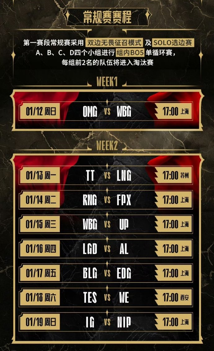 2025LPL第一赛段赛程表