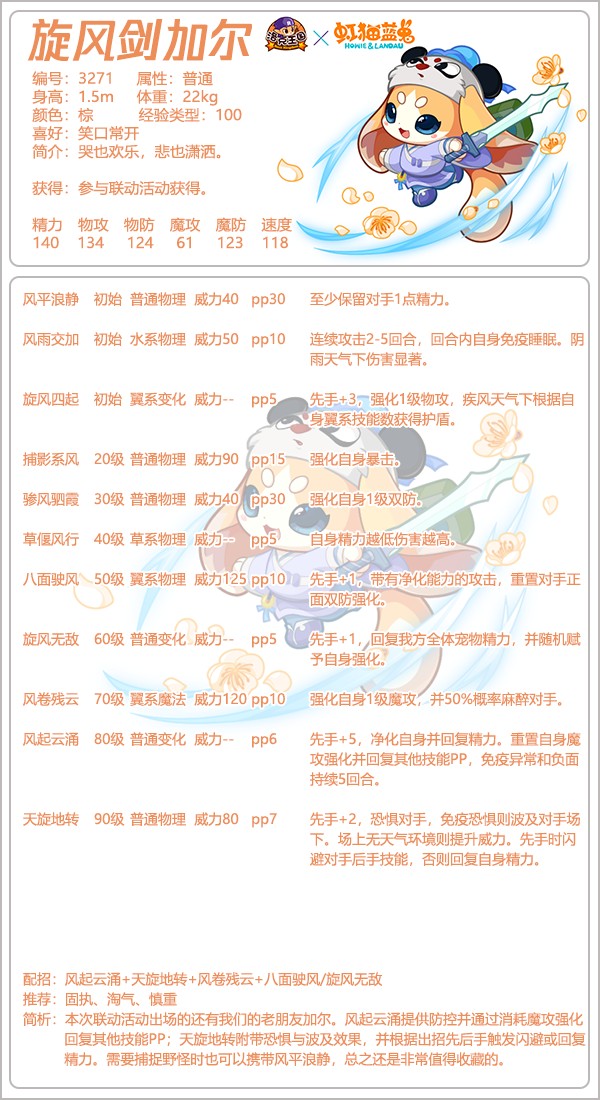 洛克王国的虹猫蓝兔系列宠物已经放出一部分,今天给大家带来了游戏里面的旋风剑加尔性格推荐,这是其中一个联动宠物,还有小伙伴不清楚什么性格好,那么下面就是具体的内容.