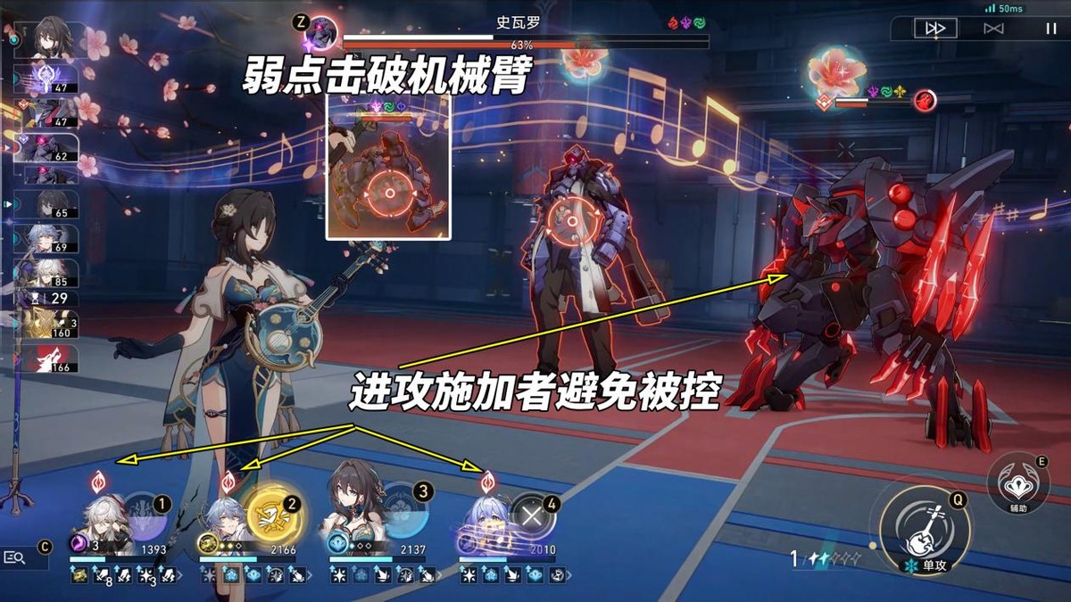 ①史瓦罗机械臂‘风雷量子’弱点,无把握0t、1t的玩家,需构想主C被逮住队友解救的概率事件,因此辅助尽可能契合机械臂弱点,方便击破/消灭救人~