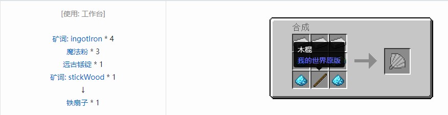 我的世界里面有很多的模组,今天给大家带来了游戏里面的魔法金属模组扇子合成方法,还有小伙伴不清楚这个模组的扇子要怎么合成,那么下面就是具体的内容.