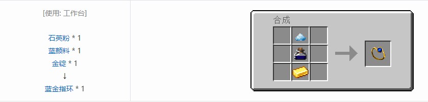 由本mod的蓝颜料,金粉,银锭合成得到,放在背包的第一排生效。