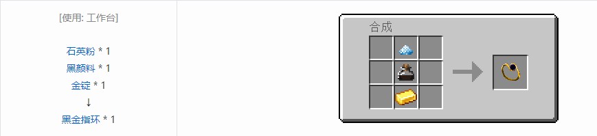 当黑指环置于物品栏的第一行中或饰品框中,玩家将会获得持续十秒的(不取下不会间断)夜视药水的效果。