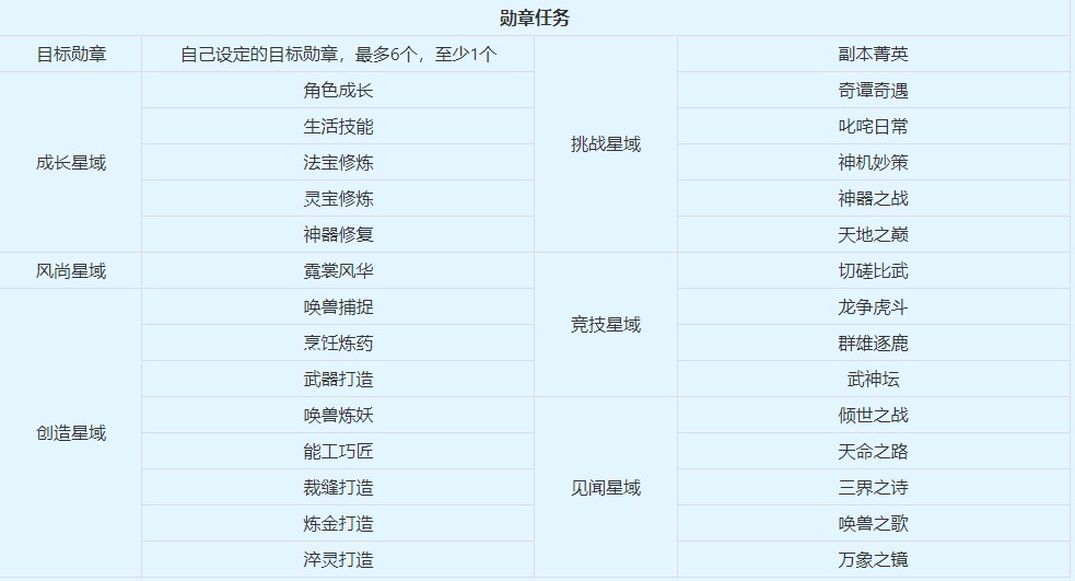 任务:罗列了各个星域各个子勋章的所有任务,通过完成任务可以进阶勋章获得星域积分